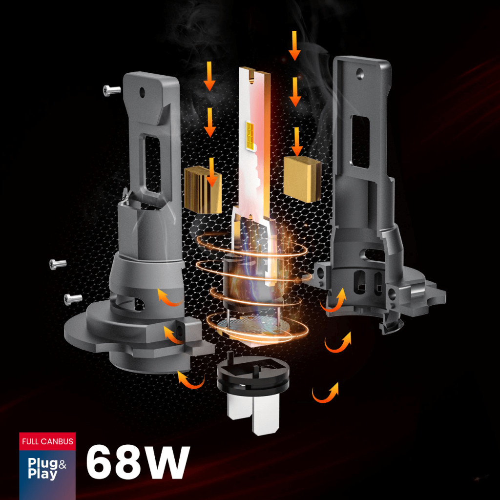Az F25 PRO BLACK Edition modell maximális 68W teljesítményt és 7646 lm fényáramot biztosít, ami rendkívül erős és egyenletes útfelület-megvilágítást eredményez. A 6000K színhőmérséklet nappali fényhez hasonló, tiszta fehér fényt ad, amely javítja a kontrasztot és a látási viszonyokat.