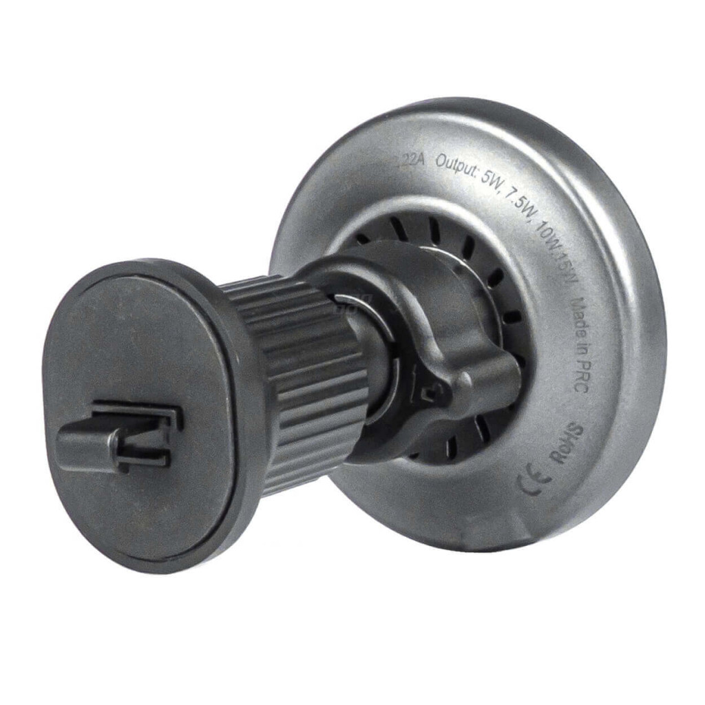 Ez a fejlett tartó erős mágnessel és forgatható karral rendelkezik, mellyel az autó szellőzőnyílásához rögzíthető. A tartóhoz tartozik egy fémlemez, amely lehetővé teszi a használatát bármilyen telefonon.