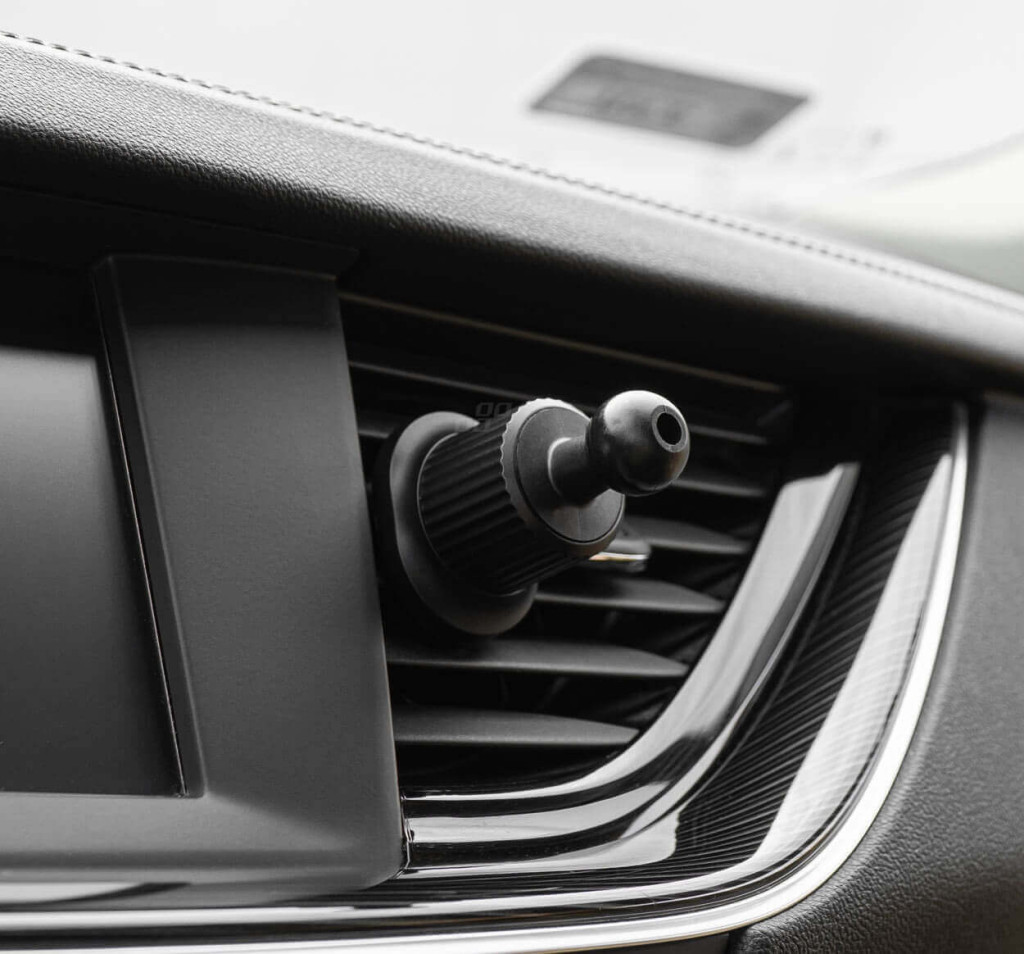 A tartó 360 fokban elforgatható, a telefont függőlegesen és vízszintesen is használhatjuk. A tartó kialakításának köszönhetően további csavarok, ragasztószalag vagy ragasztó nélkül rögzíthető a szellőzőnyílásokba.